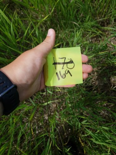 Half-way through our P8 excursion, Riley and I had another wacky experience. One of the rows we were assigned to measure had a constant rate of lost plants and toothpicks, our universal seed-identifying material. During burns and harsh winters, toothpicks (and often plants) tend to go missing. However, row 169 was unusually bare. This is when we realized we had made a dire mistake.