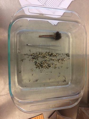 Trevor here! Today, me and Nina began our journey to clean the achenes of our respective species. I worked on my Liatris and Solidago species whilst Nina continued work on the echinacea species. A task of mental endurance, we did take a lunch break and another break to take bio photos on the green deck, which you can find on our introduction posts.